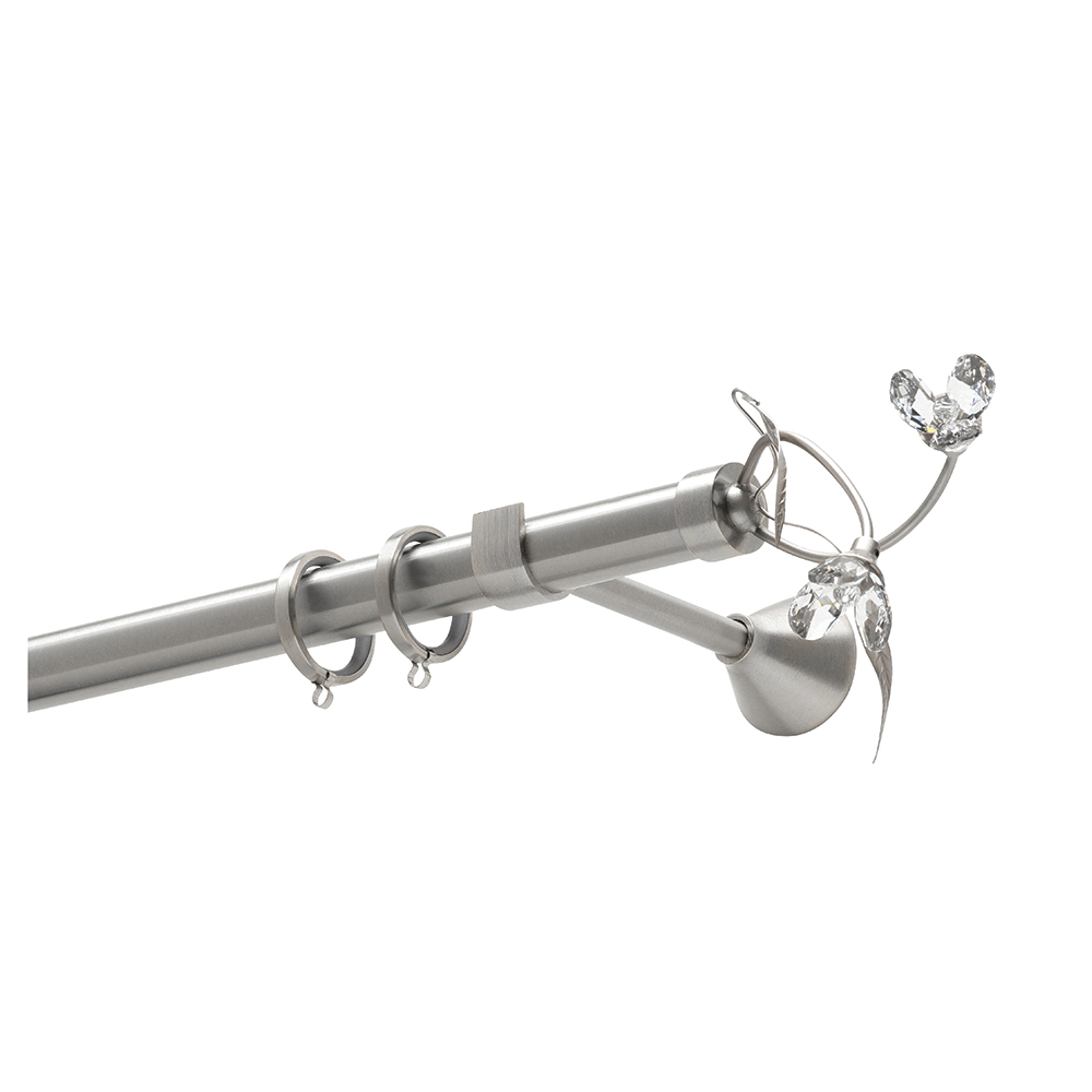 25 mm stålstang komplett med spyd, holdere og ringer. Ringene har plasinnlegg slik at de glir lydløst og uten å ripe opp stengene. Holderne er 16 cm lange og kan kappes ned etter ønske. Stengene leveres ferdig justert etter ønske. Det er mulig å levere lengre lengder og med skjøtestykke. Pris oppgis på forespørsel fra forhandler. Spyd leveres med ekte Swarovski elementer.